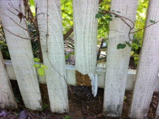 When we moved into our house, I was thrilled to have a little white picket fence around the back yard.  When I look at it,  I am filled with warm memories of growing up on a farm.